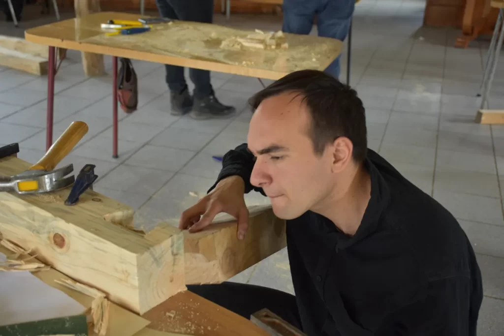 Con el propósito de capacitar voluntarios y enlazarlos con la conservación de las iglesias de la escuela chilota, se hizo un taller práctico de ensambles y empalmes de madera, dirigido por el maestro mayor Juan Cárcamo.