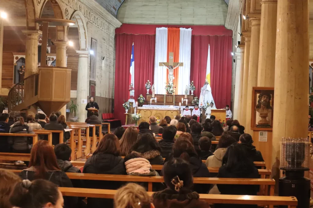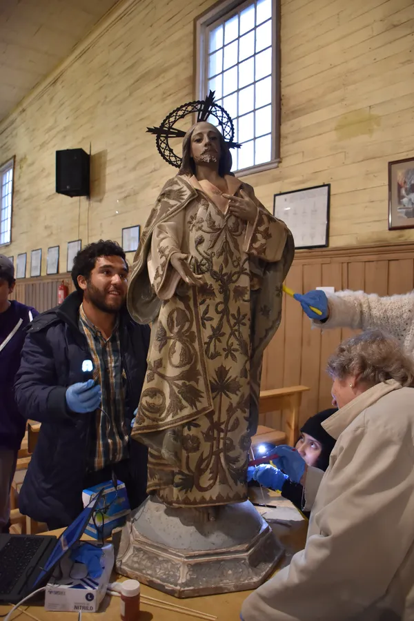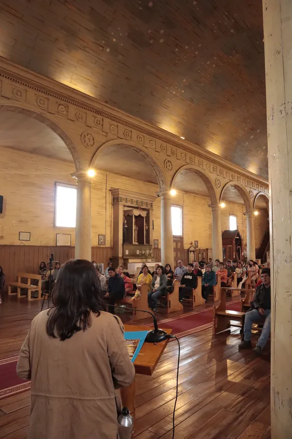 Durante las obras de restauración de paramentos laterales en la iglesia de Chonchi, se abrió el espacio para hacer visitas guiadas. Estudiantes de escuelas cercanas pudieron observar la estructura, apreciando los valores y atributos del inmueble, bajo la orientación de arquitecta residente y maestros.