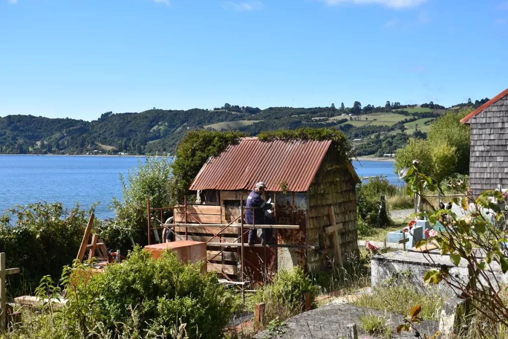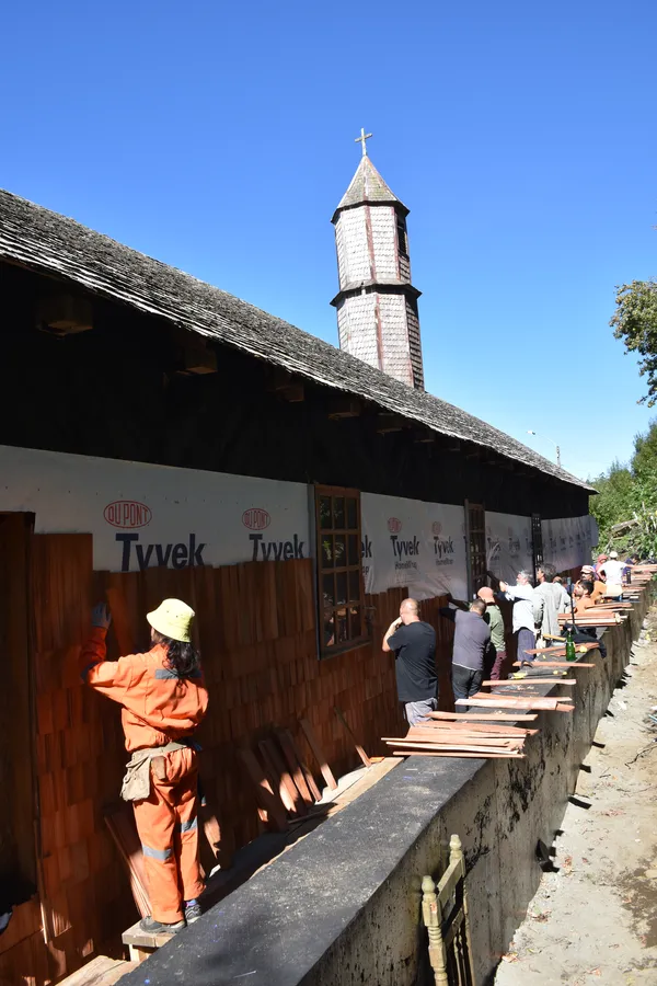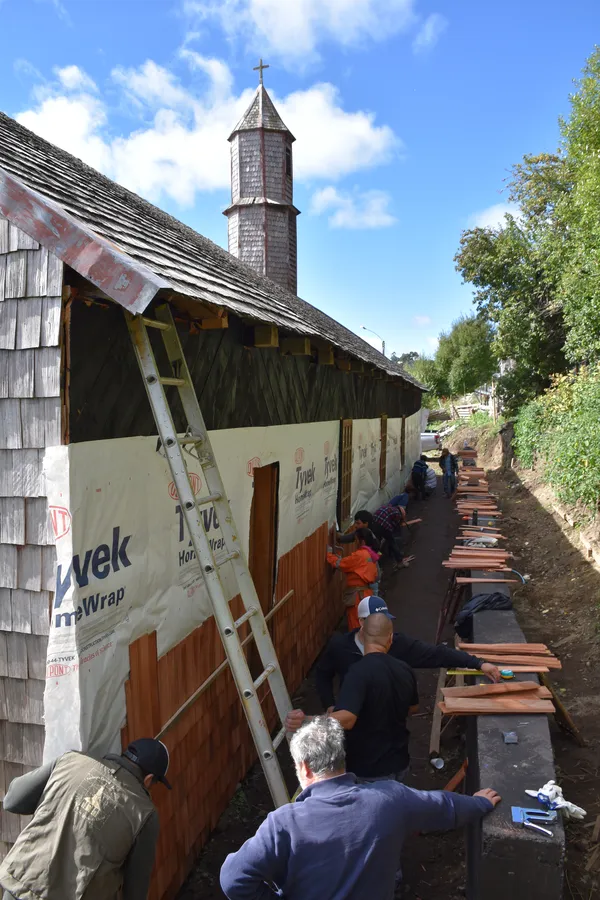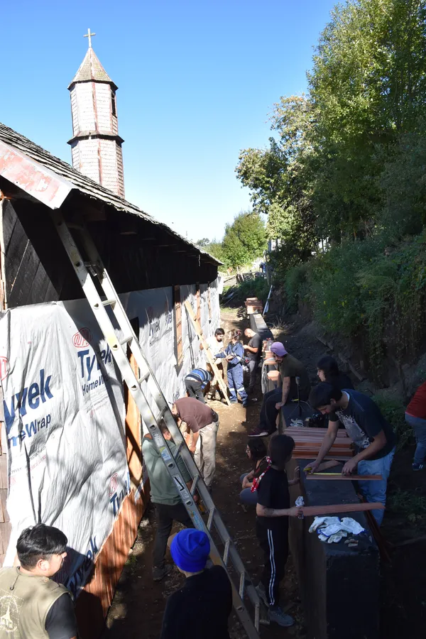 Además, el programa promovió una vinculación directa entre los voluntarios y la conservación del patrimonio al integrarlos, junto con la comunidad, en una minga de instalación de tejuelas en la iglesia. También participaron en labores complementarias a la restauración, como la reparación y renovación de la pintura del pórtico.