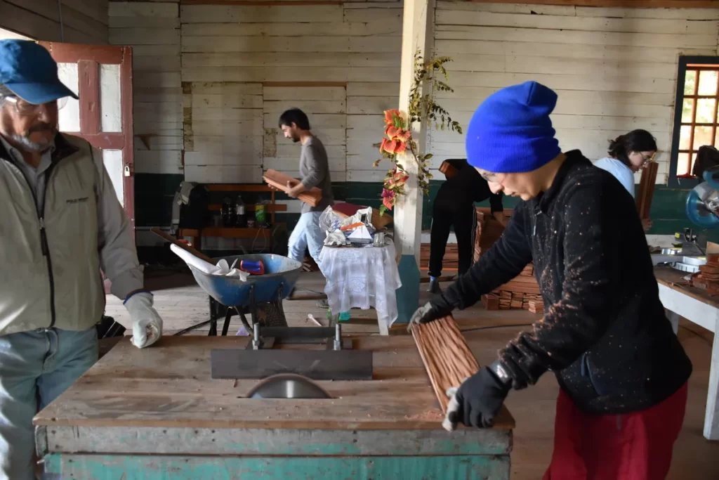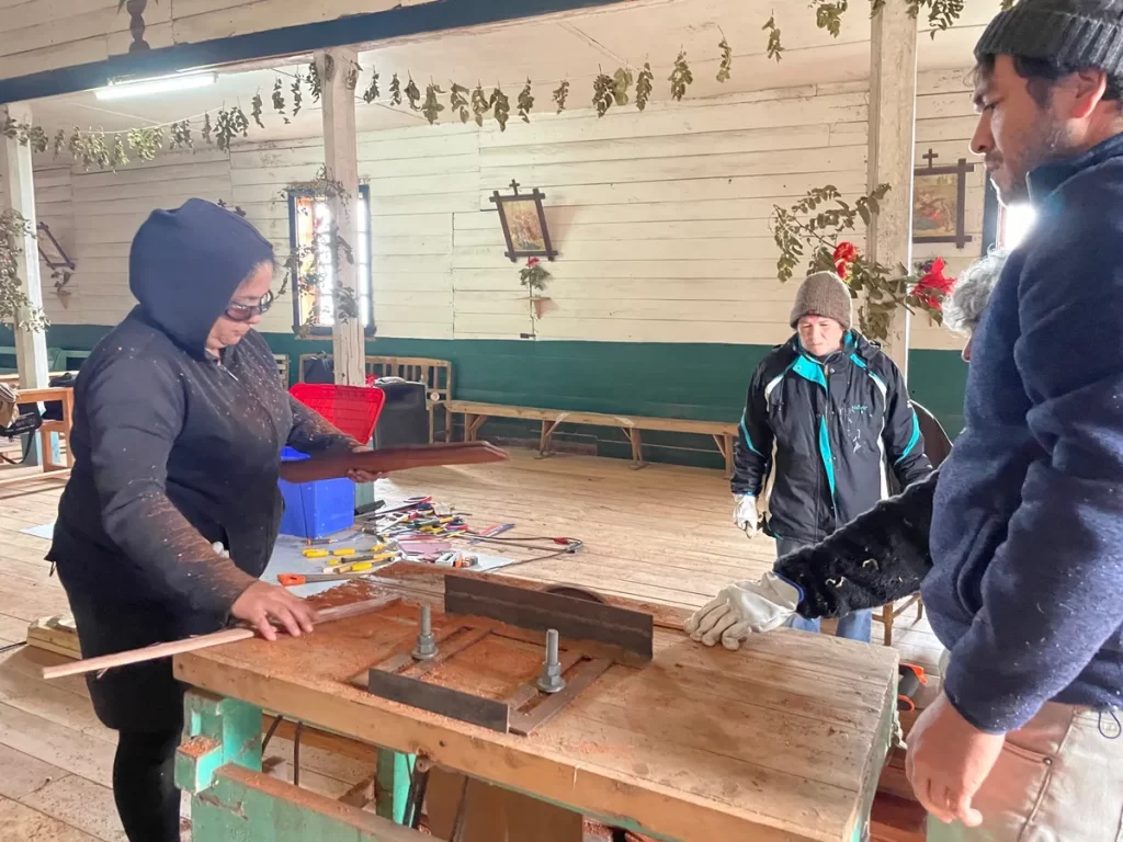 Los participantes fueron capacitados en técnicas de ensamble y empalme, así como en el reconocimiento de especies madereras, entre otros conocimientos fundamentales. Este proceso educativo tuvo como objetivo capacitar personas en la conservación de iglesias pertenecientes a la escuela chilota de arquitectura religiosa en madera, preservando al mismo tiempo el patrimonio inmaterial de la carpintería tradicional.