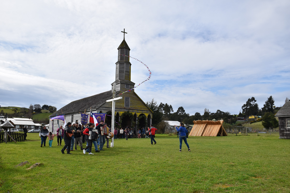 Ejecutando para este fin la obra de restauración de tabique lateral derecho, consolidando la estructura y reemplazando revestimiento en mal estado de conservación, junto a la instalación de rampa de accesibilidad universal, reparación de piso pórtico y cruz explanada. Además, se realiza registro de las celebraciones religiosas y expresiones del patrimonio cultural inmaterial, talleres a la comunidad sobre la mantención y uso del inmueble; recorridos guiados a la obra a estudiantes y taller con material reciclado de la obra para niños de la escuela de Aldachildo.